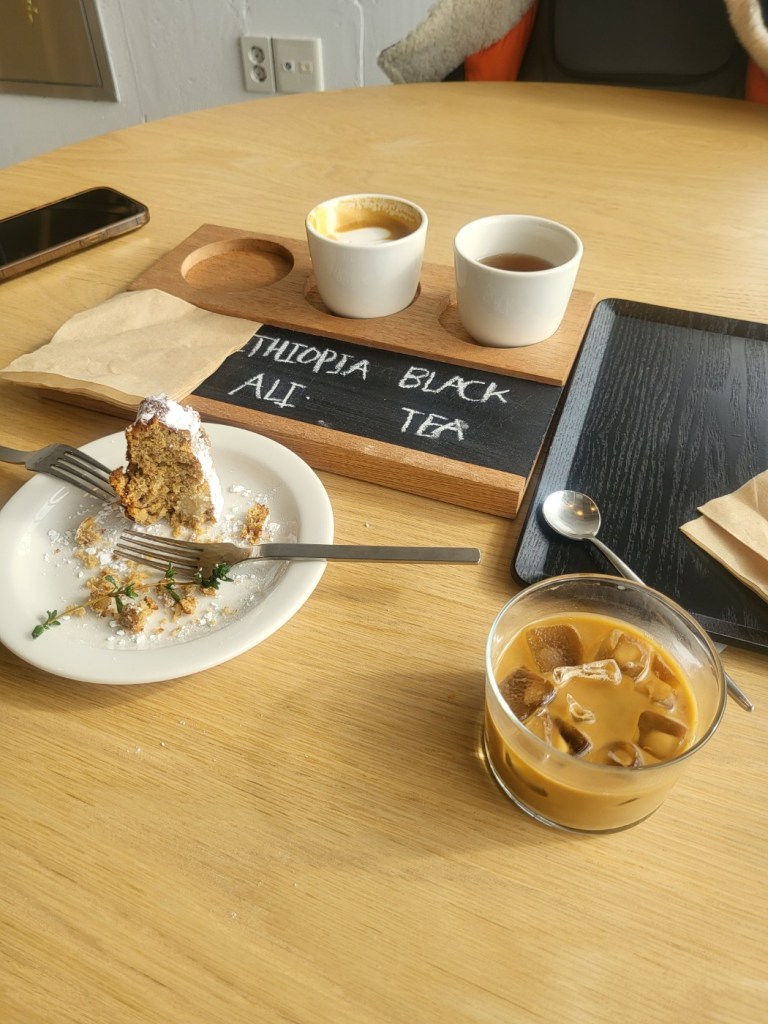아이스라테가 단품으로는 안되고 2x커피 & 1xtea 세트메뉴로 있었다. 슈톨렌과 함께 한잔.