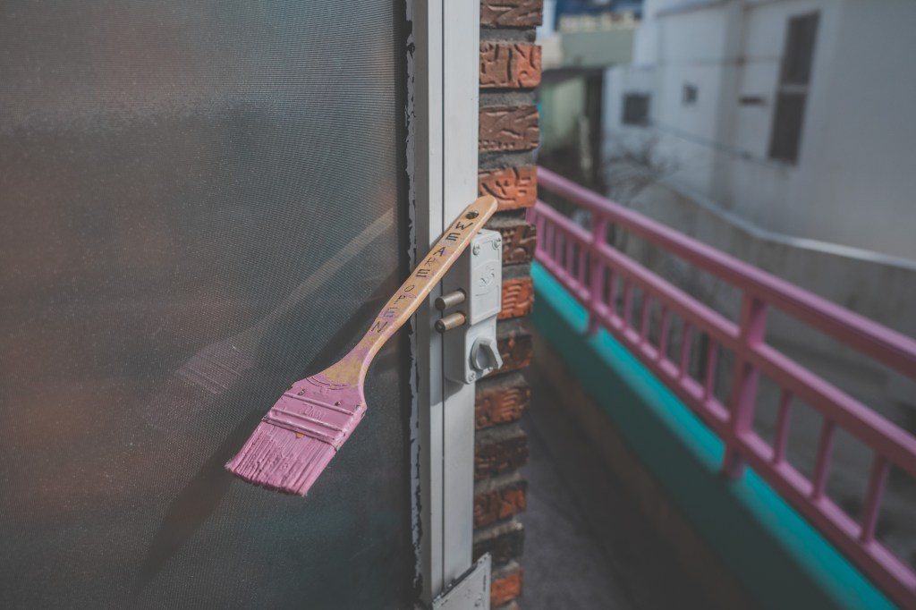 부산 해리단길에 위치한 소품샵 카페, 구옥 빌라를 개조하여 감성적으로 꾸민공간이다. 민트와 분홍 조합이 예쁘고 소소하게 신경 쓴 포인트들이 눈에 보인다.