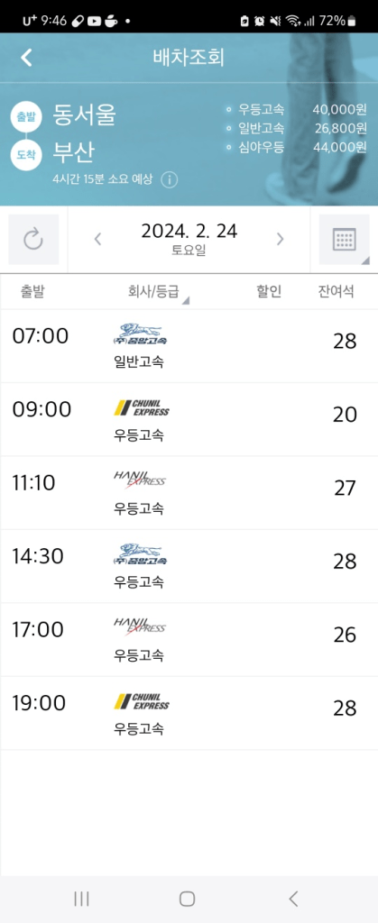 TIP2) There are three types of buses, 프리미엄 (Premium) / 우등 (Superior) / 일반 (Standard). I recommend premium or superior for long distances.