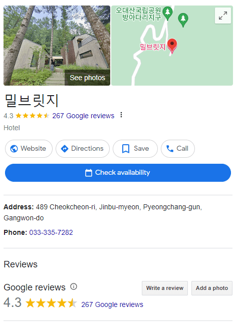 It is about one hour break into the nature, trees, breeze for a good refresh if you have your own transporation and happen to be in 평창. 4.3 google reviews rating. Reviews say it is fantastic in winter covered in snow, recommend to stay overnight in the 펜션 and they have really nice hot chicken soup (백숙).