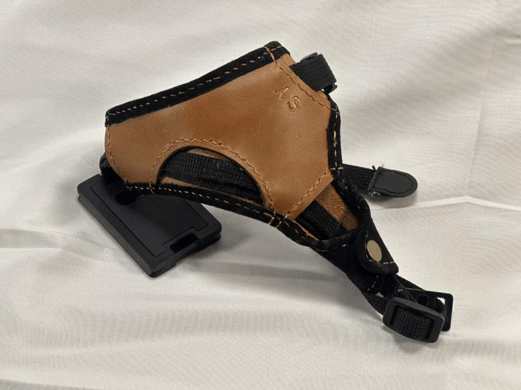 An old Nikon hand strap, the edges were worn out and the skin was coming off. Keeping the design same, I chose brown leather to make it new (and one of a kind!)