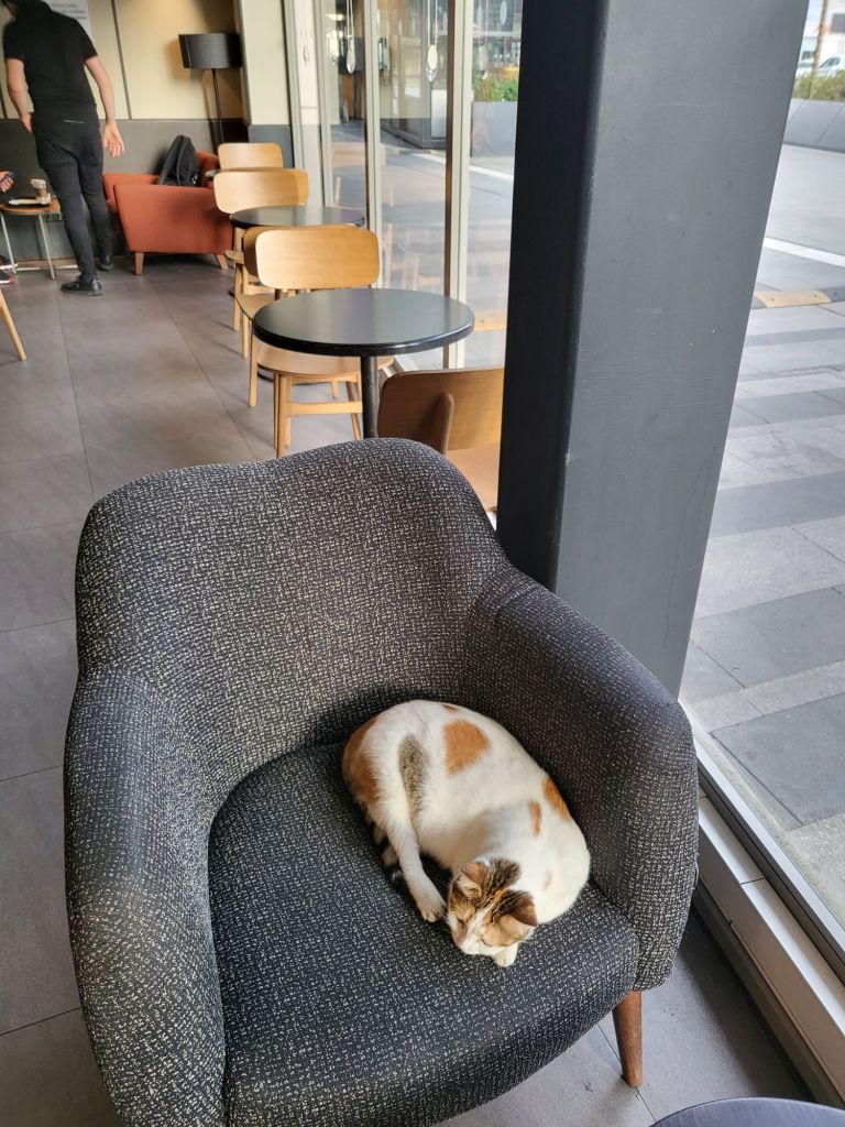 Cats in this country seem very friendly and unafraid of people. This is not surprising as I noticed cafes and restaurants let cats to rest in their premises when cats self-invite themselves into the buildings and sleep on the couch, chairs, benches, etc.