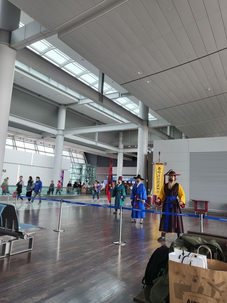 At the boarding gate at Incheon airport, we were in luck to watch 수문장교대식, how gate keepers changed their shifts in the past in Korea.